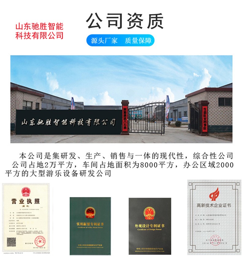 山東馳勝智能科技集團(tuán)有限公司秉承“向遠(yuǎn)方,容世界,敢為先,造歡樂”的經(jīng)營理念-追求和打造景區(qū)游樂場四季休閑游樂品牌作為發(fā)展目標(biāo)